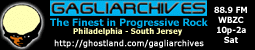 Eastern at WBZC.org: http://wbzc.bcc.edu:8080/ramgen/encoder/wbzc889.rm Click Here To Listen Through Aural Moon Radio: Instant message us through AOL IM = GAGLIARCHIVES http://www.auralmoon.com http://live.str3am.com:2010/ (Broadbanders) http://live.str3am.com:2020/ (Dial Uppers) Our Stations: 88.9FM and 95.1FM in the Delaware Valley (NJ/PA/DE) Our website: http://ghostland.com/gagliarchives Join the GAGLIARCHIVES this Saturday night at 10pm Eastern time for program 796, as we feature an exclusive live concert recorded at the NJ Proghouse/Metlar Museum on April 19th, of fusion powerhouse McGill, Manring, Stevens courtesy of our friends at http://www.progradio.net. The performance features tracks not yet recorded, and pieces from the 2 Free Electric Sound recordings, Addition By Subtraction and the new Controlled By Radar double CD. This concert promises to be pleaser for fusion fans worldwide...Hosted by Jim Robinson, it is all caught live at The Metlar Museum in Piscataway, NJ. We'll also feature new live music from Niacin and the Blood, Sweat, and Beers CD...then we will feature a Flower King flashback to 1997 and program 502, when Roine Stolt joined us for an exclusive interivew. The Flower Kings will be at Nearfest 2003. We'll also track music from fusion guitarist Johnnie Valentino, a Pat Martino student, and his 2000 release titled Searching Souls, we'll track recent music from Tennessee project People Of The Squares and their Simianometry CD...into the vaults with music from German band Mythos and their records Dreamlab from 1975, and Quasar from 1980 as part of our 4th hour space out...also music from Australian project Cybotron and their self titled album from 1976...Maurice and Walter's "Moolah" from 1974...and we'll kick things off with Darryl Way's Wolf and the 1973 album Canis Lupis, produced by Ian McDonald, and features Ian Mosley, future Marillion drummer....Tune in and enjoy!