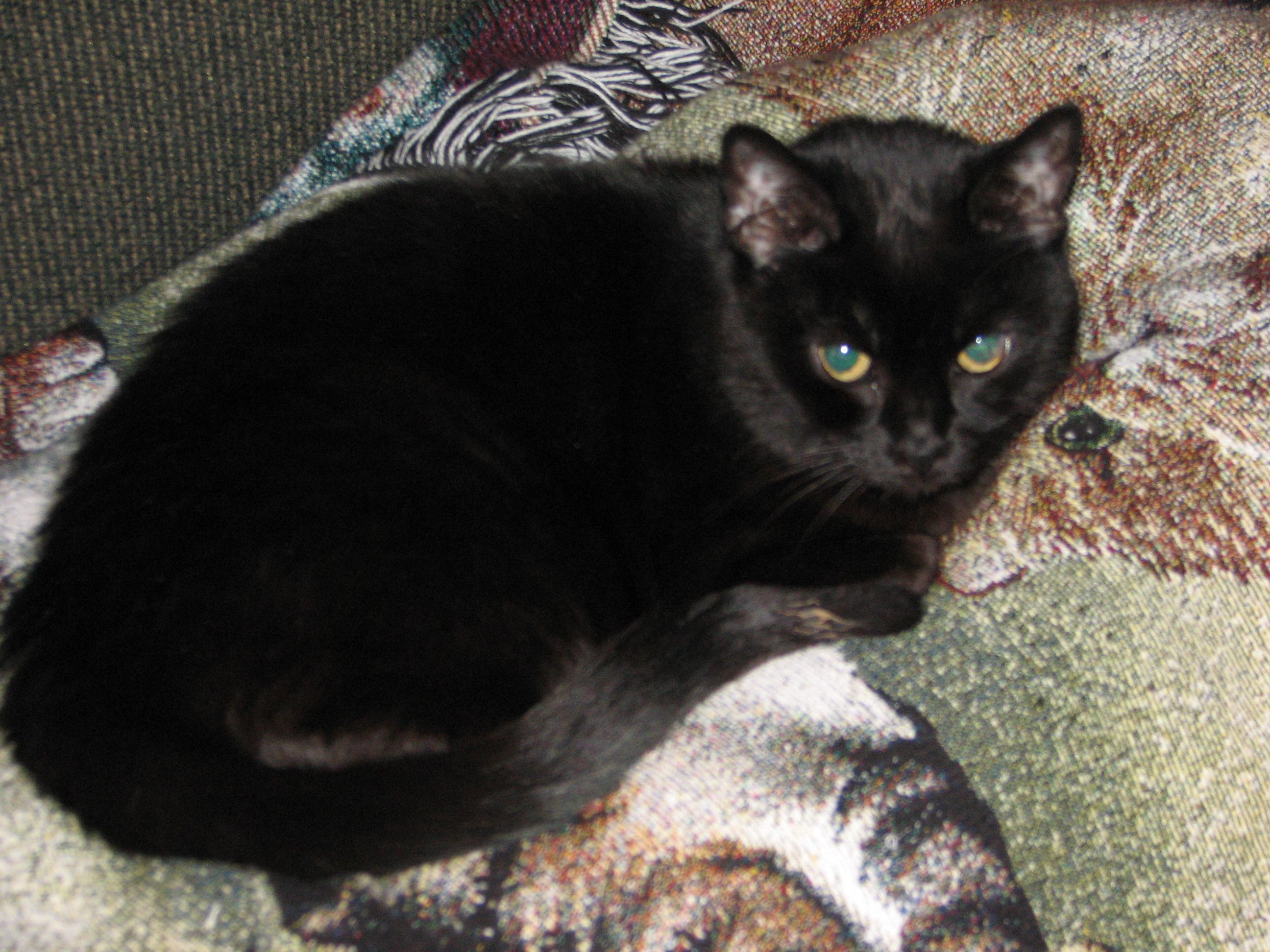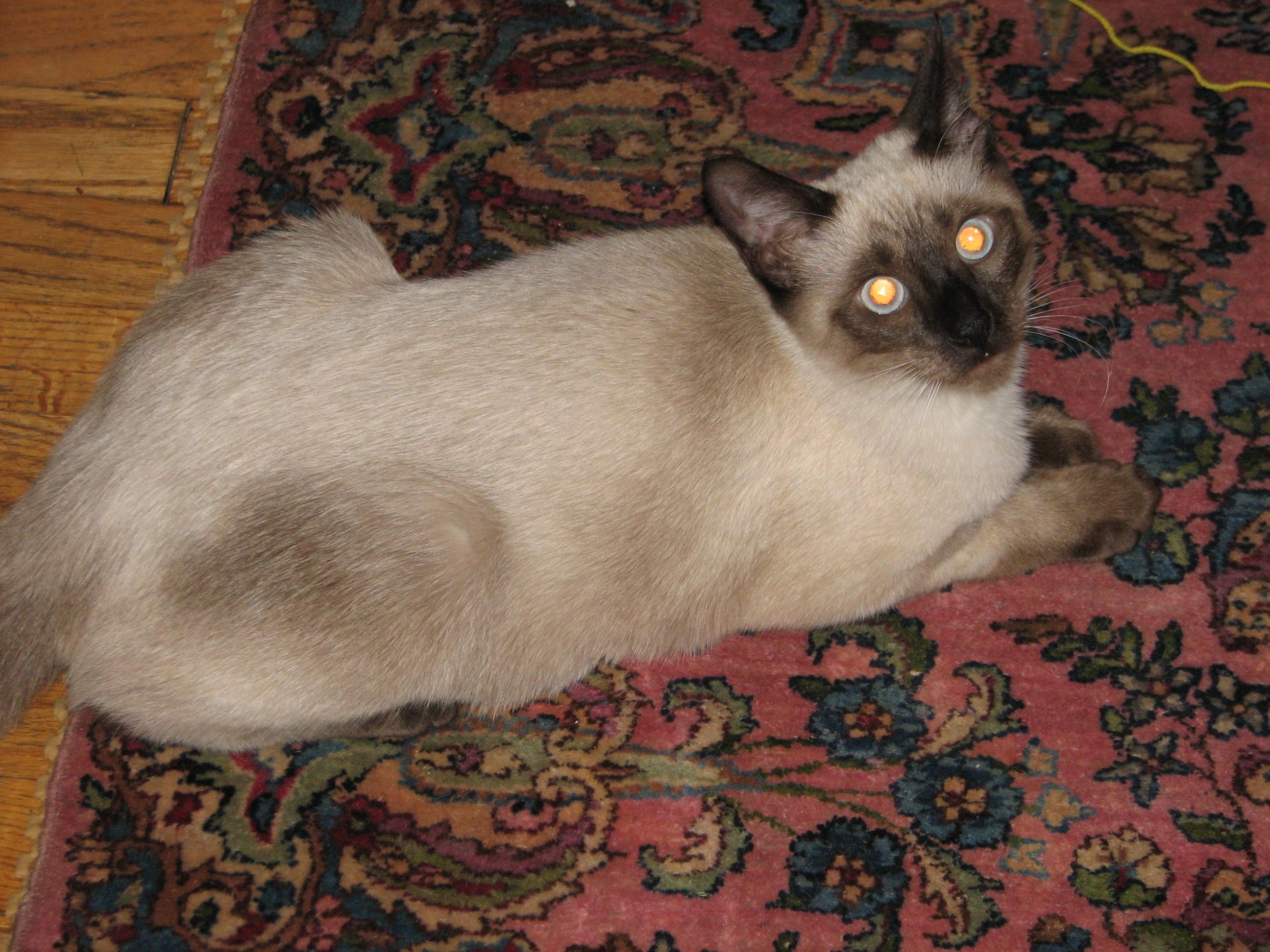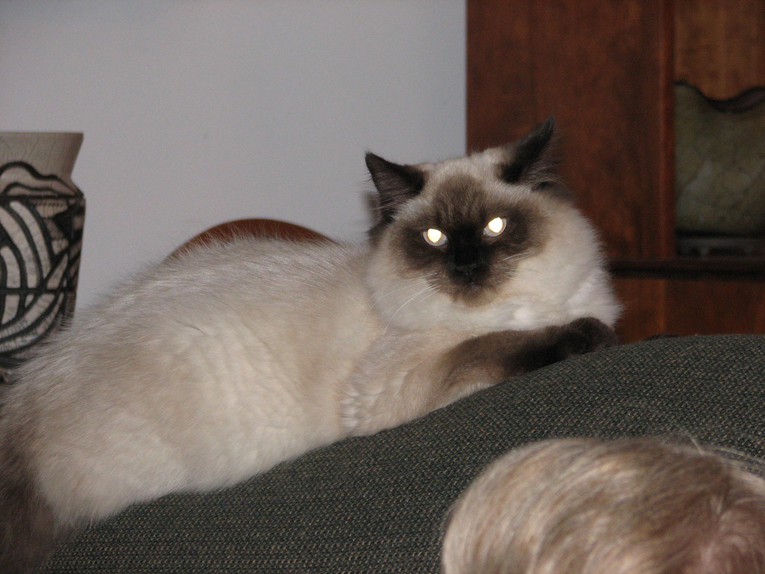 Greyson is the oldest, quickly followed by Sable. Then Odd Job (who had a brother named Motor Head, but he parished young in the wild streets). She was our neighbor's Son's cat, but she was adopted since after the death of her brother because he wasn't caring for them well. (It was my contention that my daughter stole her. Fran tells it differently.) That leaves Lastrade as the youngest. He is named after a character in one of the many Sherlock Holmes books (a tradition we've kept for our siamese cats). Sgt. Lastrade was one of the many detectives Holmes worked with. He, however, looked like Oscar the grouch from Seseme street when a kitten so acquired that nick name, soon followed by "monster" because he also resembled the Bumble from Rudolph fame. So his full name is Sgt. Oscar "Monster" Lastrade. They are all indoor cats and each demand equal lap time. Sable & Oscar get Sallie. Odd Job and Greyson split their time between Frances and I. P.S. (Roger) I have reduced the sizes of the pix - sorry.
