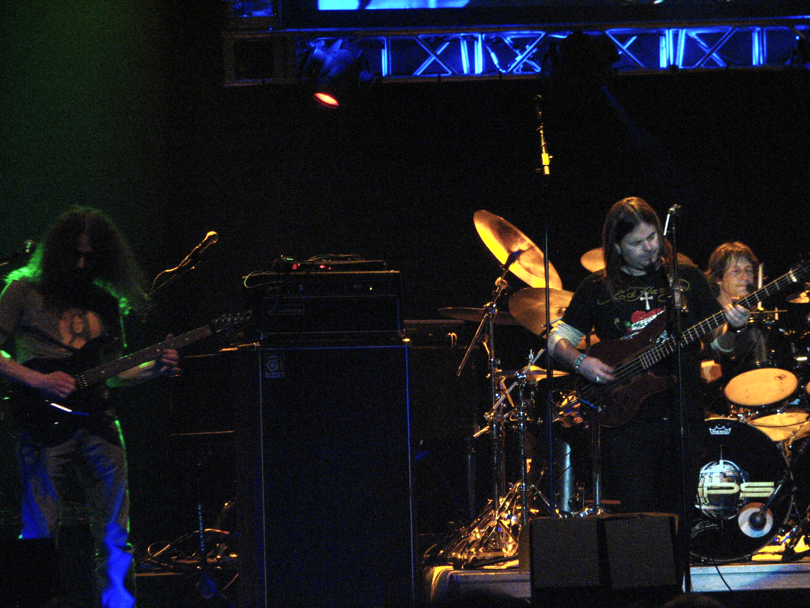 May 2, 2008 The Keswick Theatre is a really nice venue. It is an older theatre in the vain of the Fox Theatres. It is ornate in subtle ways (nothing like the grandeur of the Fox Theatre in Atlanta with it's Arabian Nights theme) but it shows the opulance of the times when it was built. The stage is a great size allowing the bands to streatch out. (From what I've heard about past ROS spaces, that's a huge improvement.) The acoustics are very good as well. Seating could use a little better rake in the front section. All of us big-headed proggers can cause sight obstructions. :mrgreen: Those in the patrons seats up front, I'm sure, don't have that issue. I was about midway back. There's lighting this year! (also a missing element from years back.) It's a fairly decent R&R set-up. Veri-lights, big projection screen behind showing video feed of the musicians, two spots (thank you), and nice color selections for mood lighting. Only glitch in the lighting was that the stage left area down front was void of decent front lighting. Both bands had their keyboard player set up there, just out of the light. This made picture taking of that area a real challenge. So missing good photos of Eric Norlander was regrettable. Okay, now for the music. GPS opened the show. They are a rock oriented with symphonic style keys and PT stylings on the guitar. The bass player (John Payne) is the leader and Vocalist. You may know him from his tour with the 2nd version of Asia. Guthrie Govan and Jay Shellen (also of that version of Asia) were on guitar and drums, respectively. Ryo Okumoto (spock's beard) usually is the keyboardist. He had a schedule conflict and so they had to put up with the styling of Eric Norlander as a substitue (poor guys.) ![]() The songs were pretty good. I found, in general, that they were just a little subpar in abilities. John's vocals are very strong. Jay on percussion was very good and had a very nice solo near the end of the set. Guthrie was adaquate. He had some good technique, but to me it seemed he had quite a few mis-fingerings so the performance didn't come off rock solid. Sometimes it feel into the metal trappings of 'too many notes.' The band did 3 Asia covers (or were they really covers since they were the representatives of that group?). That didn't seem to win the favor of many of the audience members. There was very little applause when the songs were introduced as an Asia song. Anyway to sum it up, they did a decent job. I know a few other more talented and creative bands that probably would have done a better job. But we had a good time. (although someone needs to teach John how to tune his own bass guitar. He had problems with that several times through the show, with Guthrie having to come over in the middle of the song and return the bass while John was playing - but it did improve the song once back on track). :roll: Ambrosia was next. The change over was done with alacrity but it was not thorough enough. They stated out with several issues with Shem Von Schroeck's acoustic guitar and then later wiht Doug Jackson's (lead guitar) amp. There was no sound check session between bands to check these things out. But that may be due to the openness of the theatre. There is not a full partition between the house and lobby area, which is a little cramped. So they could not segregate the band from the audience. That said, I should say that once everyone, in both bands, got hooked up and working, the Mix was excellent. I could pick bones at individual moments, but overall a very smooth and not ear shattering mix. Musically, Ambrosia has matured very well. Great energy from all the performers. Again I did find the lead guitarist (a later addition to the band about 10 years ago) just a little lacking in technique, but he had some really good moments at times. Shem Von Schroeck lends a nice rhythm acoustic guitar and powerful and melodic lead and backing vocals. The percussionist, Burleigh Drummund creates a great percussion battery with his jazz influenced stylings. Very enjoyable. He also had a very good solo section. His back up vocals were also in good harmony. The heart and soul of the band is Bass player (sometimes guitar) and lead vocalist Joe Puerta. Excellent musician and vocalist. Nice R&B section vocally from him as well as multiple influences from Jazz, latin, ska, and R&B in his bass playing. I quite enjoyed his personality and playing. There are two keyboardists, David Cutler Lewis on piano and synth, and Christopher North on Organ and Piano and synth. David was at one point a keyboardist with Shadowfax. His programming is a nice touch to the overall sound. Christopher is an animal on the organ and other keys. Good stuff on a old reliable Hammond. As a side note, there were times I thought he looked just like Stephen King. So overall a great show. The even did a new song which was very good. the end of the show was, of course, their big hit with a cool jam opening. They even got to do an encore that almost took us past the city curfew. So day one began very well. It was hard to walk through the lobby before and during the show without bumping into fellow Moon-lovers. It's a veritble Moon Fest.